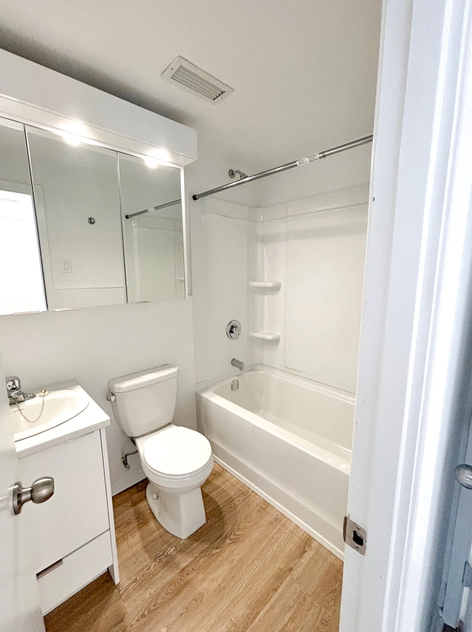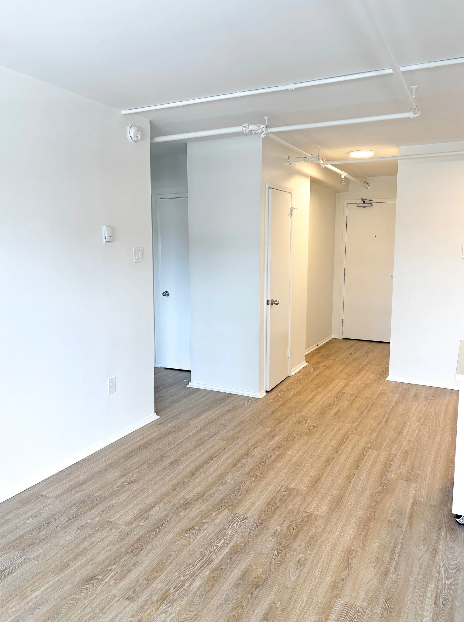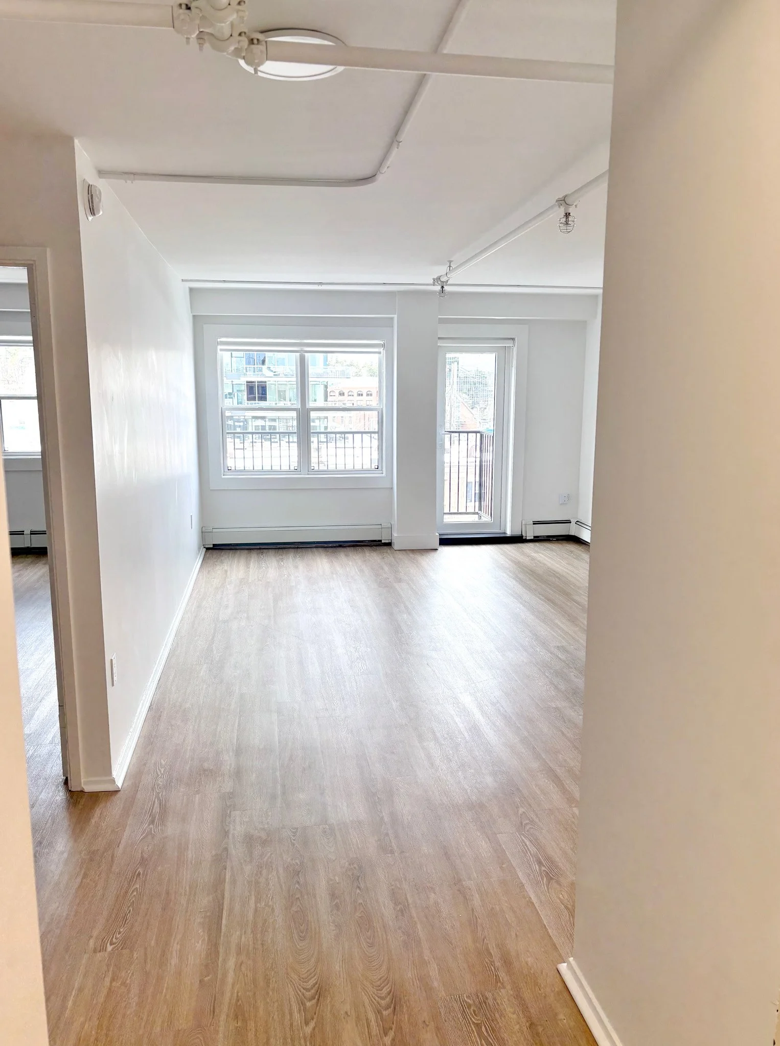 Hardwood floors span the entire unit, offering a sleek and contemporary look that complements any decor.